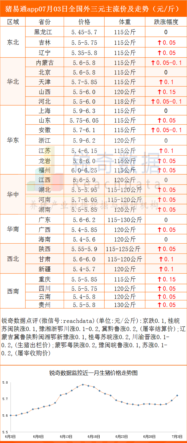 07月03日各地豬價走勢-豬企提價現象增多