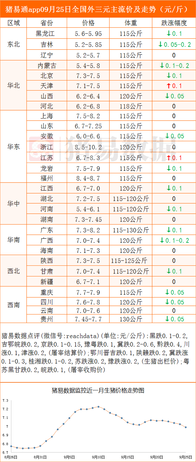 09月25日各地豬價走勢