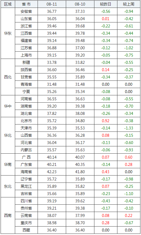2020年08月11日全國(guó)外三元生豬價(jià)格行情漲跌表